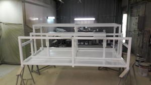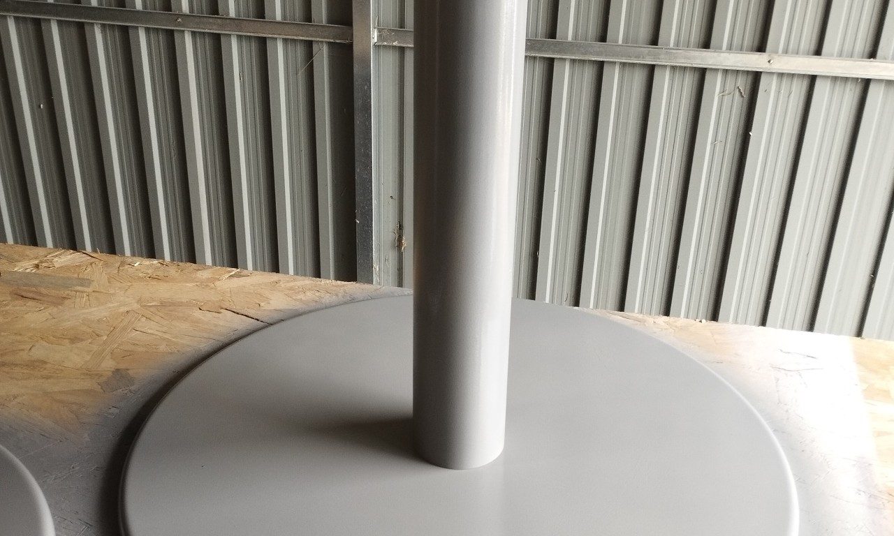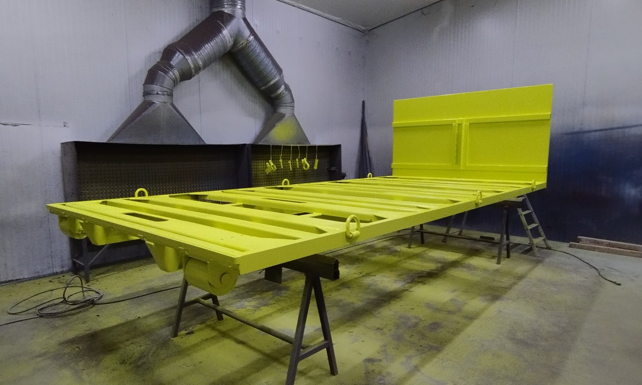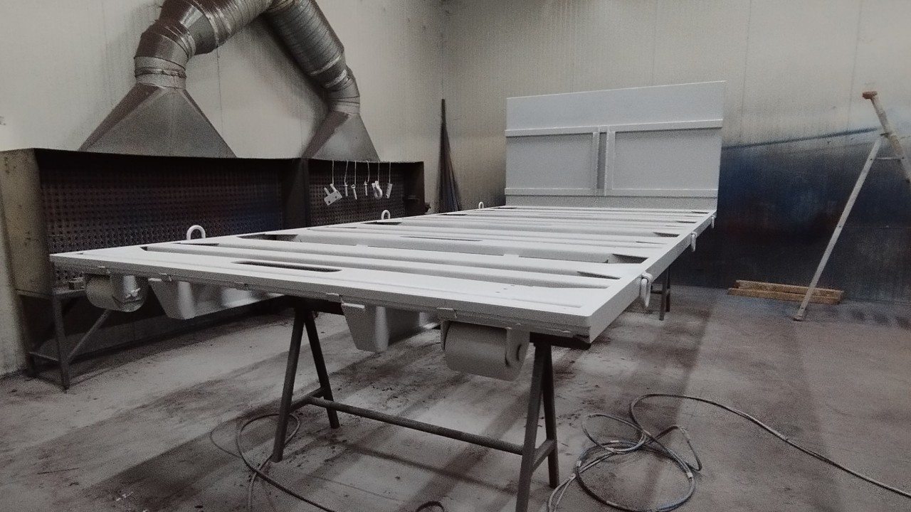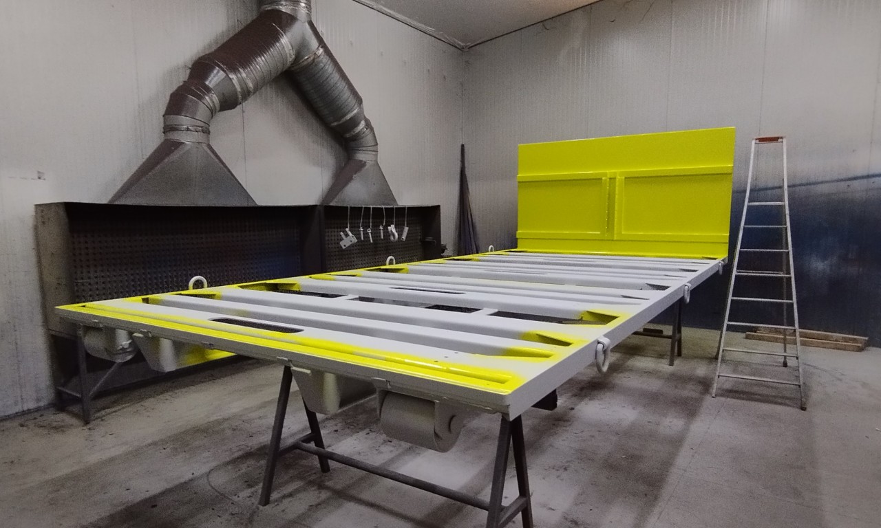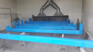 Application d'un revètement de peinture liquide précédée d'une couche d'apprêt.